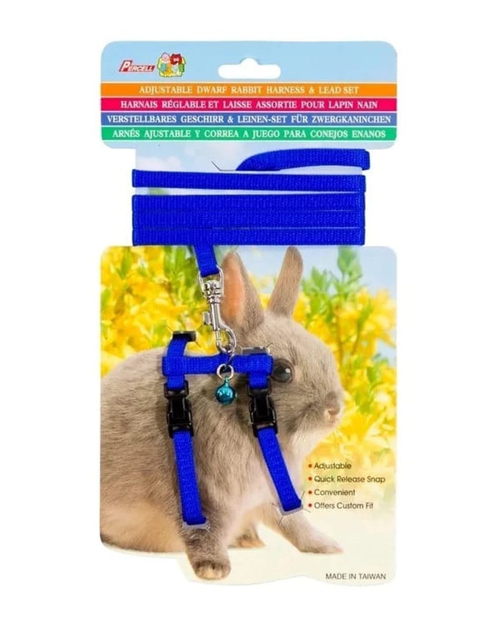 Percell Rabbit Harness is an adjustable nylon harness and leash set with quick-release clips and bell, designed for comfort, safety, and easy outdoor exploration. Fits necks 13–20 cm, body 18–30 cm; leash length 120 cm.